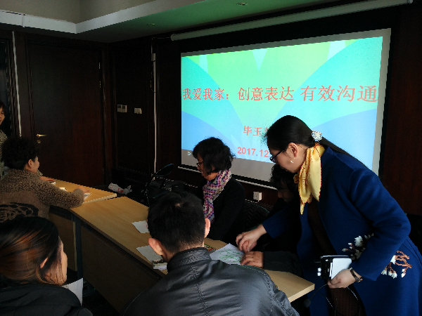 心理团训进社区。财税与公共管理学院党总支邀请校心理咨询中心毕玉芳老师走进丁香社区,开展了题为“我爱我家:创意表达,有效沟通”的心理团训活动。活动中,心理学专家毕玉芳老师引领大家学会创意表达,有效沟通,让爱充满家园。毕老师先后采用角色扮演、绘画、情感分享等训练方法,帮助居民宣泄情绪,放松心情,舒缓压力,表达感恩。活动寓教于乐,参与居民纷纷表示获益良多。