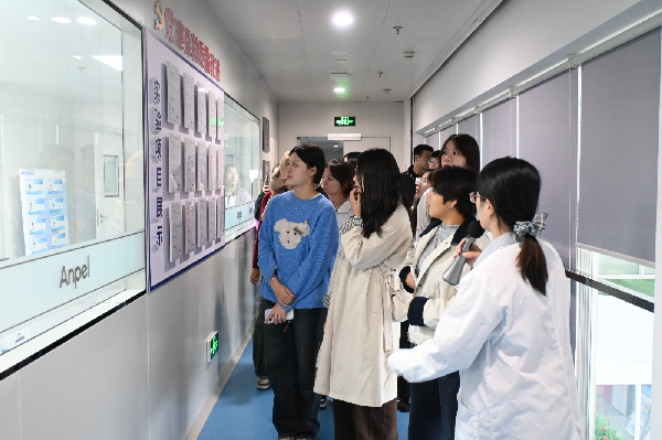 走进上海安谱实验科技股份公司,同学们深入实验室,近距离感受科技的力量。实验员们专注操作的身影、精密先进的实验仪器、严谨细致的检测流程,让在场学子颇有感触。从理论到实践,从抽象到具象,这次参观不仅让大家对松江优秀企业有了更立体的认知,更让“科技兴城”的理念深深扎根心中。
