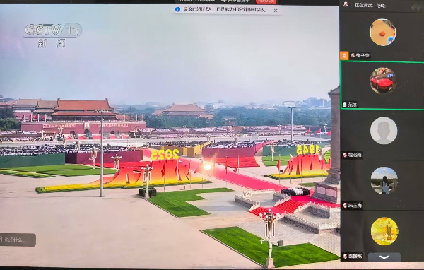 观看过程中,师生们或在宿舍、家中,或利用课余、工作间隙,通过电脑、手机等设备认真收看。当庄严的国歌奏响,不少师生自发起立、肃立致敬;看到阅兵式上整齐的方阵、先进的装备,大家深切感受到国家的强大与和平的来之不易,纷纷在社交平台或交流群中分享感悟,传递对历史的铭记与对祖国的祝福。