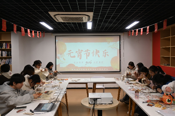 现场设置猜灯谜、做花灯、你画我猜、看图猜成语四个环节,学院师生代表欢聚一堂,在欢声笑语中共度元宵佳节。当一盏盏花灯亮起,映照着同学们的笑脸,不仅点亮了节日的氛围,更承载着大家对新年学业有成、前程似锦的美好祈愿。