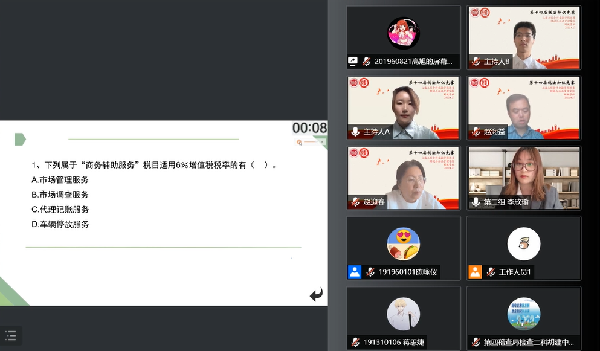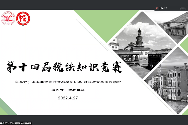 4月27日,由上海立信会计金融学院团委、财税与公共管理学院主办,财税学社承办的第十四届税法知识竞赛以线上的形式成功举行。国家税务总局上海市松江区税务局副局长薛梅英,国家税务总局上海市税务局第四稽查局副局长杜晶晶,检查二科科长、四级调研员胡建中,上海理工大学财政税务系主任、国民经济学学科带头人田发教授,上海商学院税务系尹淑平,上海立信会计金融学院财税与公共管理学院党总支书记闫锐、党总支副书记王亭,教授赵迎春、税务教研室主任王瑶、税务教研室赵海益等领导、老师出席本次比赛并担任本次比赛的评委。