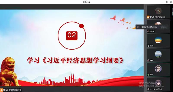 首先,预备党员高子璇带领全体成员共同学习《习近平经济思想学习纲要》相关内容,《纲要》创造性地提出我国经济已由高速增长阶段转向高质量发展阶段的重大论断,为我国未来的经济发展提供新思想指导。通过学习,支部成员对新时代新征程的战略规划有了更深刻的认识,充分理解了理论与实践、认识论与方法论的统一结合,进一步明确了新时代经济建设中青年人的战略定位与奋斗目标。预备党员徐洁在学习后分享:“作为青年学生,我们要深刻把握习近平经济思想的丰富内涵和精神实质,以科学理论来武装头脑、指导实践、推动工作,以实际行动迎接党的二十大胜利召开。”