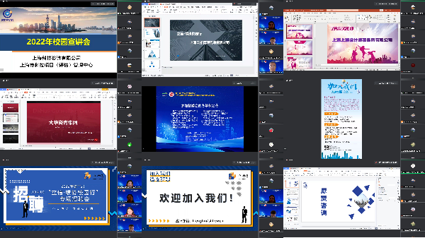 在举行研讨会的同时,校园专场招聘会也在线上如火如荼地进行。本次招聘会有上海云拓管理咨询有限公司等15家上海市预算绩效管理第三方中介公司参加,120余名同学线上参会。各用人单位分别进行了招聘宣讲,介绍了企业发展情况、业务范围、发展战略、校招计划、应聘渠道等。招聘会受到了用人单位和学生的一致欢迎,15家用人单位共收到70余份实习和求职简历。用人单位的进一步招聘信息同步在公众号中缤纷财税公众号。
