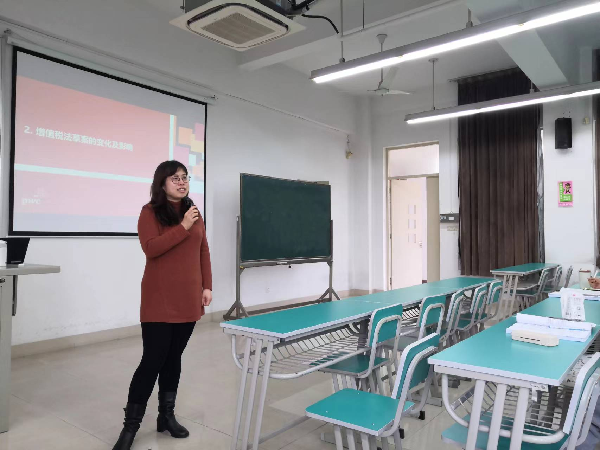3月23日,普华永道税务师事务所间接税合伙人李慧嵩应学院王晓玲老师邀请,走进《中国税制(一)》课堂为同学们讲解了增值税立法草案修订变化。