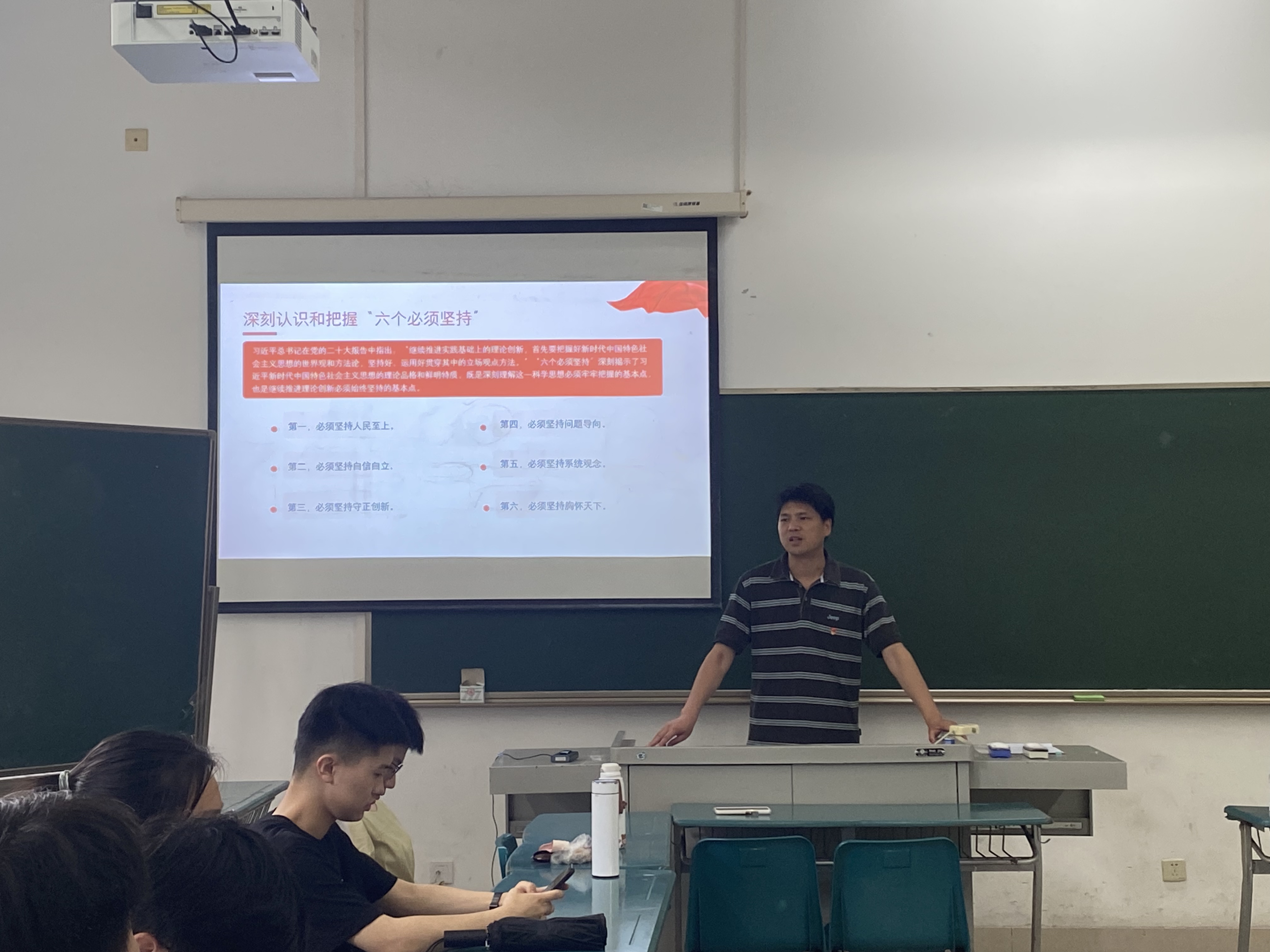 支部书记杨陆锋首先带领毕业党员再次学习“六个必须坚持”。这“六个必须坚持”,体现了习近平新时代中国特色社会主义思想的核心要求。杨陆锋着重讲解了要坚持自信自立,党的百年成就和成功道路是中国共产党领导人民根据中国的实际自己决定、自己奋斗出来的,展现出的是自信自立所塑造出的伟大历史定力。新征程上,以坚持自信自立凝聚历史定力,就要坚定不移推进马克思主义中国化时代化,以习近平新时代中国特色社会主义思想为指引,坚持把国家和民族发展放在自己力量的基点上,坚持把中国发展进步的命运牢牢掌握在自己手中。他提出要求,作为党员要在生活中贯彻党的理论,将它作为自己的行动指南。勉励毕业生党员们在新的人生道路上要继续增强政治自觉、思想自觉、行动自觉,坚持不懈用习近平新时代中国特色社会主义思想武装头脑、指导实践、推动工作,把这一思想贯彻落实到工作、生活的各方面,充分发挥党员的先锋模范作用。