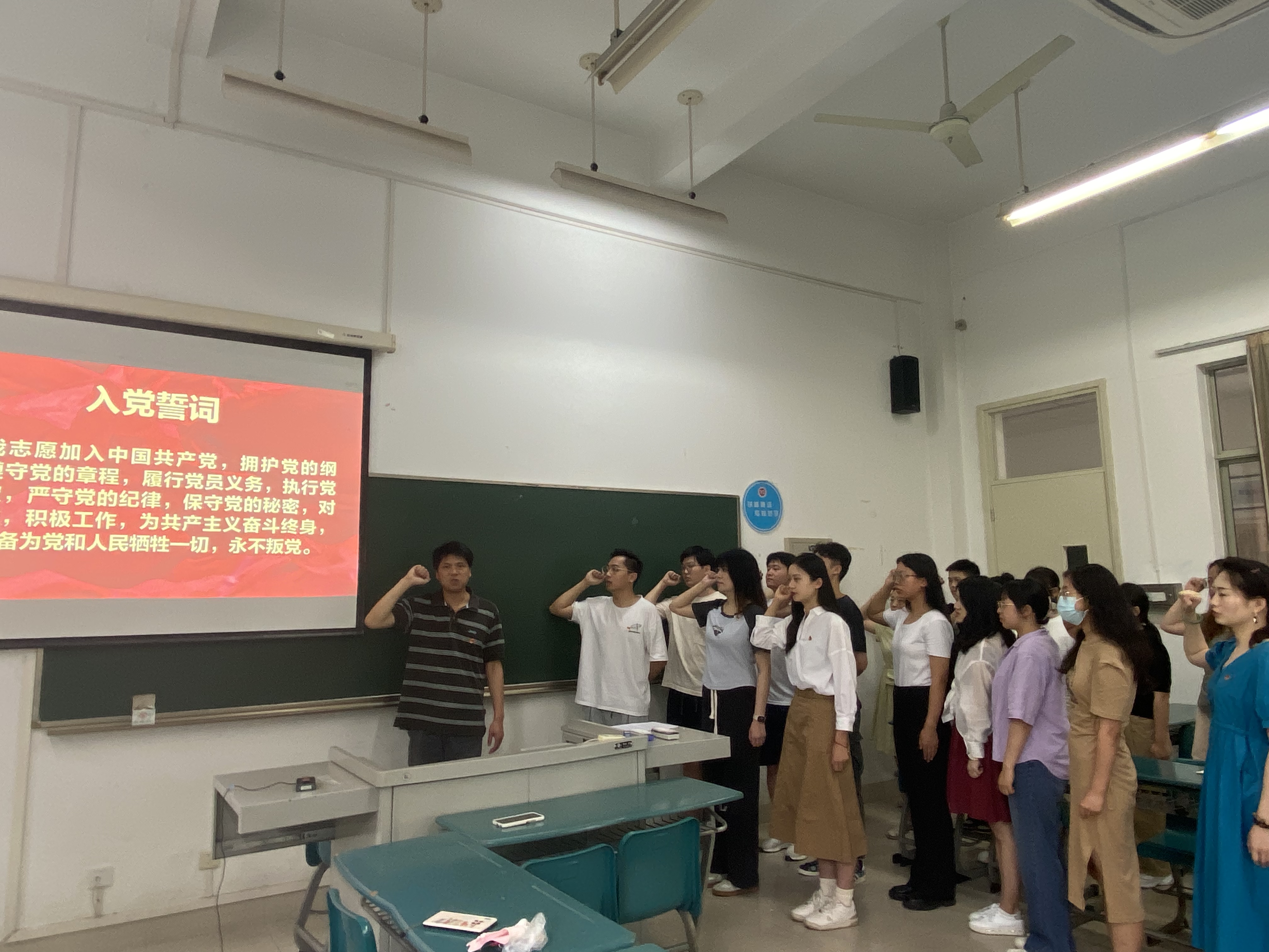 支部书记杨陆锋带领全体支部学生党员重温了入党誓词。铿锵有力的誓词鼓舞着在场每一个人,党的伟大精神指引着我们前进的步伐。重温入党誓词,就是重温入党时的决心和信念,这是党员干部对自身的一种鞭策和激励。无论是新党员入党宣誓还是老党员重温入党誓词,虽只是一种形式,但这份党旗下所立下的誓言,感召每一位党员努力实践、自觉奉献,激励每一位党员不断进取、奋斗终身。通过宣誓,坚定了理想信念,强化了毕业生党员们的责任感、使命感,增强党组织的凝聚力与战斗力。