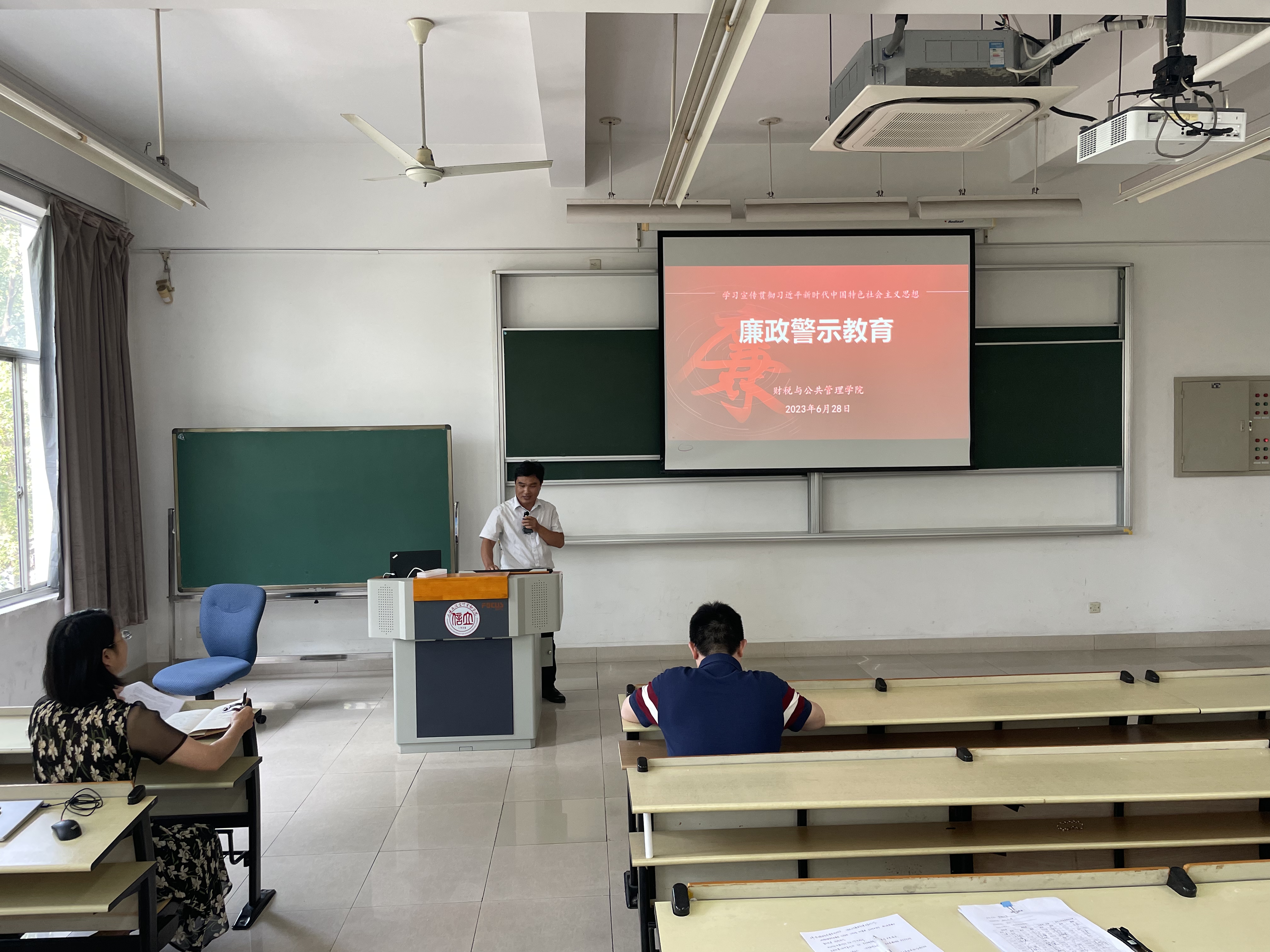 6月28日,财税与公共管理学院开展廉政警示教育,由副院长、纪检委员罗月领主讲,全体教师党员参加。