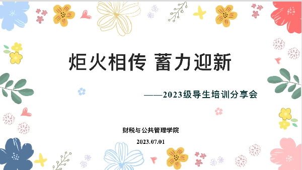 为保障2023级新生迎新工作顺利开展,帮助导生熟悉工作内容、增强责任意识、提升工作能力,7月1日财税与公共管理学院于线上举行“炬火相传 蓄力迎新”2023级导生培训会。新生辅导员田美、杨陆锋、金玥仪,2022级优秀导生代表沈乐源、王冰琪及2023级全体导生出席会议。