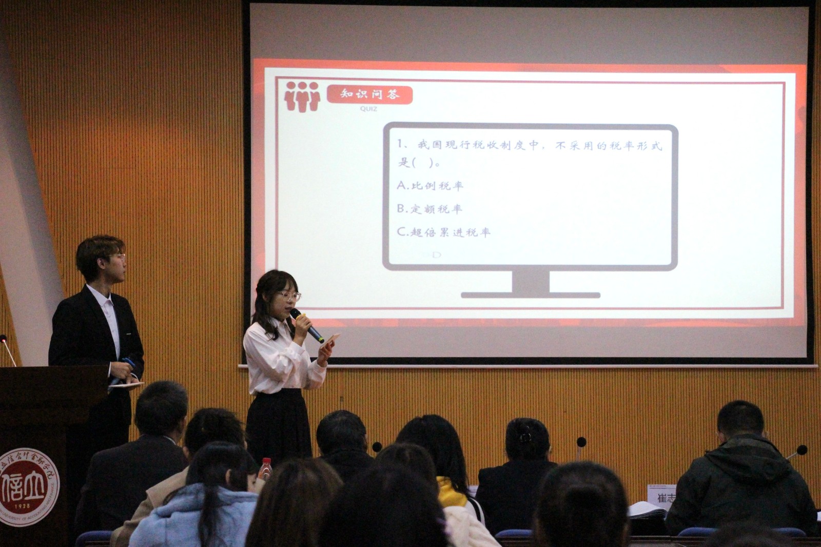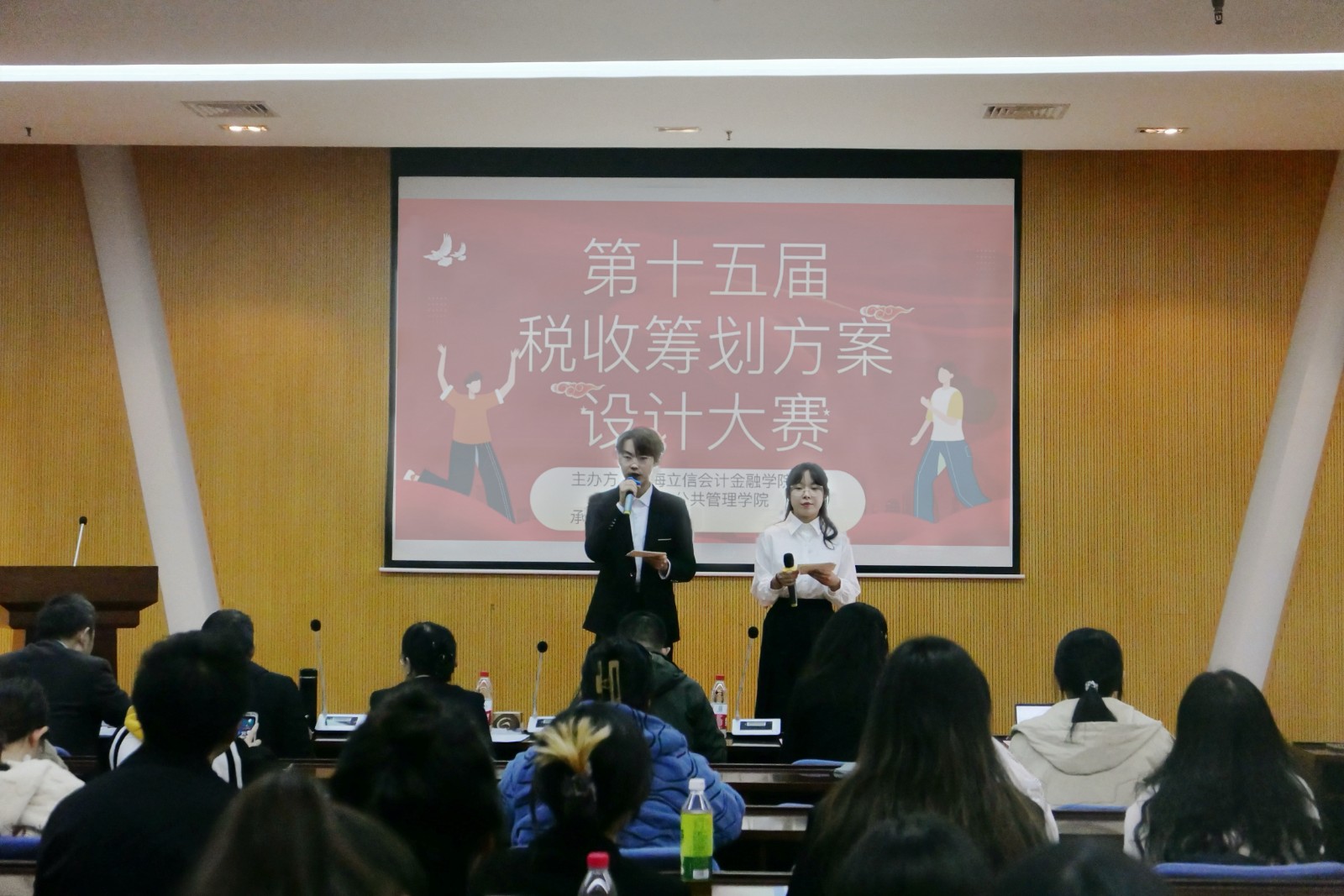 11月15日下午,由校团委、财税与公共管理学院主办,财税学社承办的第十五届税收筹划方案设计大赛在行政楼二楼多功能厅圆满举行。上海海关学院海关与公共经济学院院长崔志坤,财税与公共管理学院税收学教授赵迎春,税务教研室主任赵海益,税收学教师王瑶、于佳曦出席比赛并担任评委。