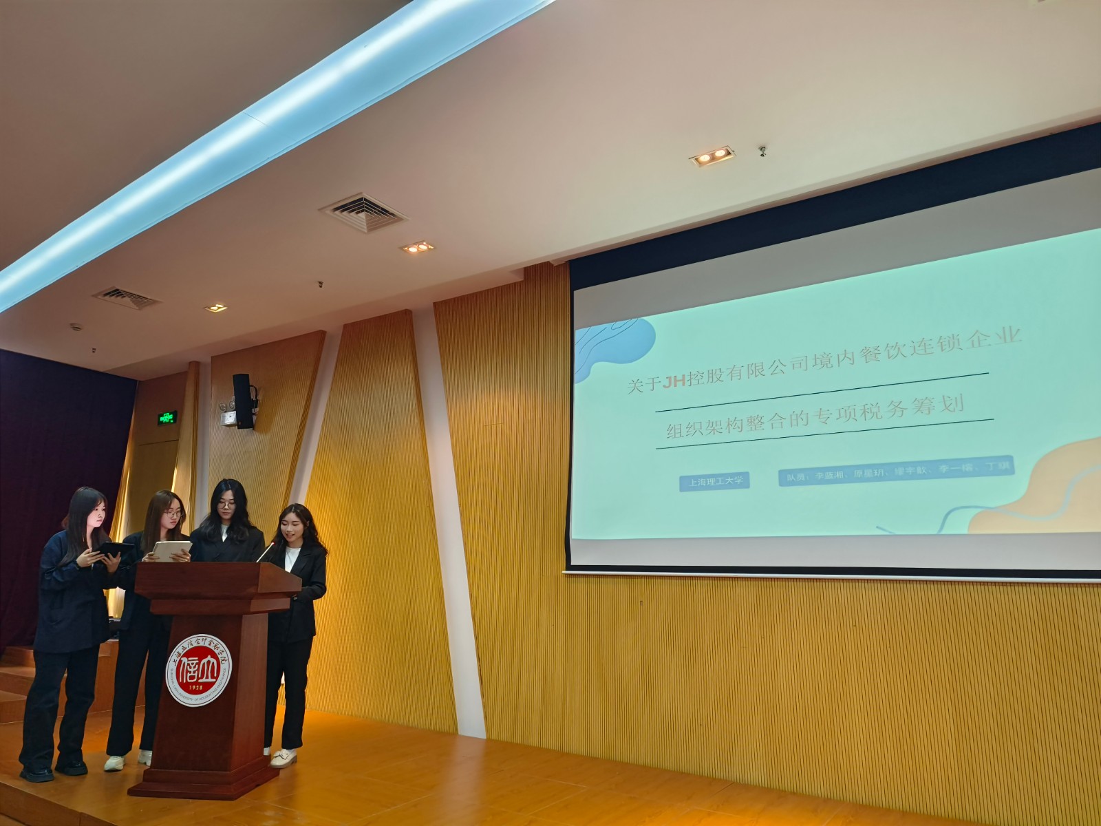 大赛分为初赛和决赛两个阶段,本届参赛选手们热情高涨,共有来自不同学院、不同专业,以及上海理工大学、上海第二工业大学、上海海关学院、上海商学院等50多组选手、200余人进行角逐,最后有7组选手脱颖而出进入决赛。在决赛阶段,7个小组逐一就筹划题目,从方案计算、税收负担等方面进行税收筹划方案展示分析及现场答辩。最终我校财税与公共管理学院的李可萱小组获得一等奖,上海理工大学的李蓝湘小组、财税与公共管理学院的何硕源小组获得二等奖,上海第二工业大学的杨惟熠小组和财税与公共管理学院的李心雨、黄梦思小组获得三等奖,上海第二工业大学的王宸钰小组获得优胜奖。
