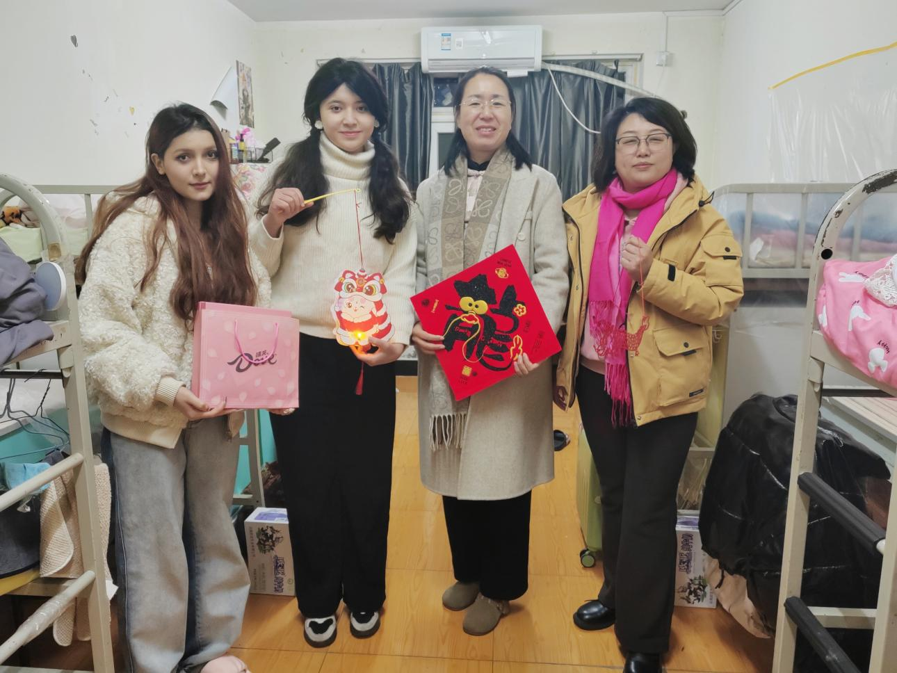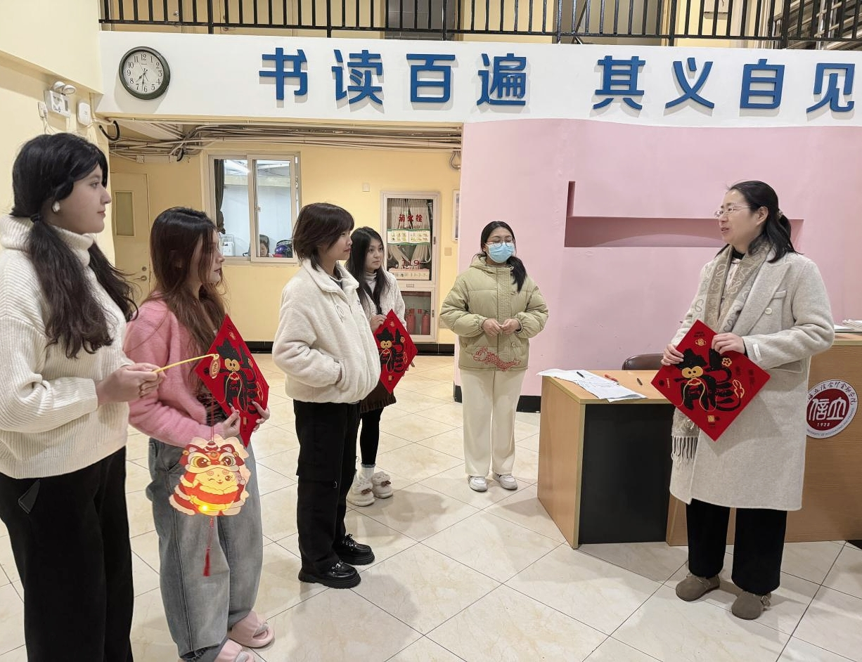学院为同学们送上包含春联、窗花等具有节日元素的小礼物,还带来了牛奶、巧克力等生活物资。老师们逐一走访了留校同学寝室,了解同学们归并住宿情况以及是否存在生活困难等。辅导员杨陆锋、田美并就学生实习就业、学业情况提出针对性建议,同时提醒同学们注意宿舍用电安全、注意防火,为助力平安园区建设贡献自己的一份力量。留校同学们感受着浓厚的春节气息,对学院的贴心慰问纷纷表示感谢,并表示将会牢记学院师长嘱托,在新的一年再接再厉、争取更大的进步。