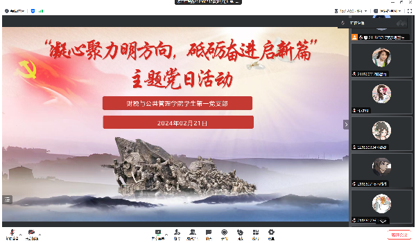 为深入学习贯彻习近平新时代中国特色社会主义思想和党的二十大精神,凝聚全体党员的向心力,2月21日下午,财税与公共管理学院学生第一党支部开展“凝心聚力明方向,砥砺奋进启新篇”主题党日活动,全体党员、积极分子参加。