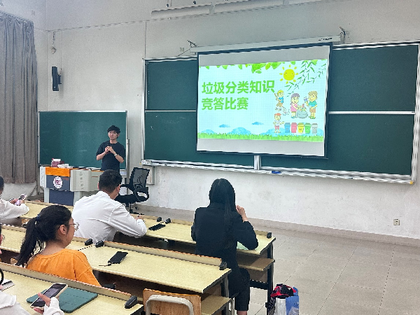 本次垃圾分类知识问答赛围绕生活垃圾分类法规政策制度、生活垃圾分类技巧方法开展,题目内容丰富、形式灵活,能够有效考察同学对垃圾分类知识技能的掌握情况。比赛中,每位同学沉着应答,用良好的心理素质和敏捷的思维反应展现出了丰富的知识储备。