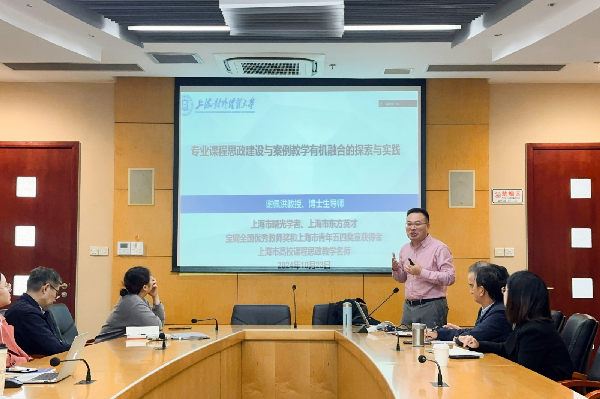 上海高校课程思政教学名师、上海对外经贸大学谢佩洪教授开展以《专业课程思政建设与案例教学有机融合的探索与实践》为题的专题讲座,从专业课程思政建设的时代背景、课程思政与案例教学的融合设计和专业课程思政建设的未来思考三方面与学院教师交流研讨,以案例教学为切入点,深入探讨课程思政的目标元素、核心要点和融入实践等。