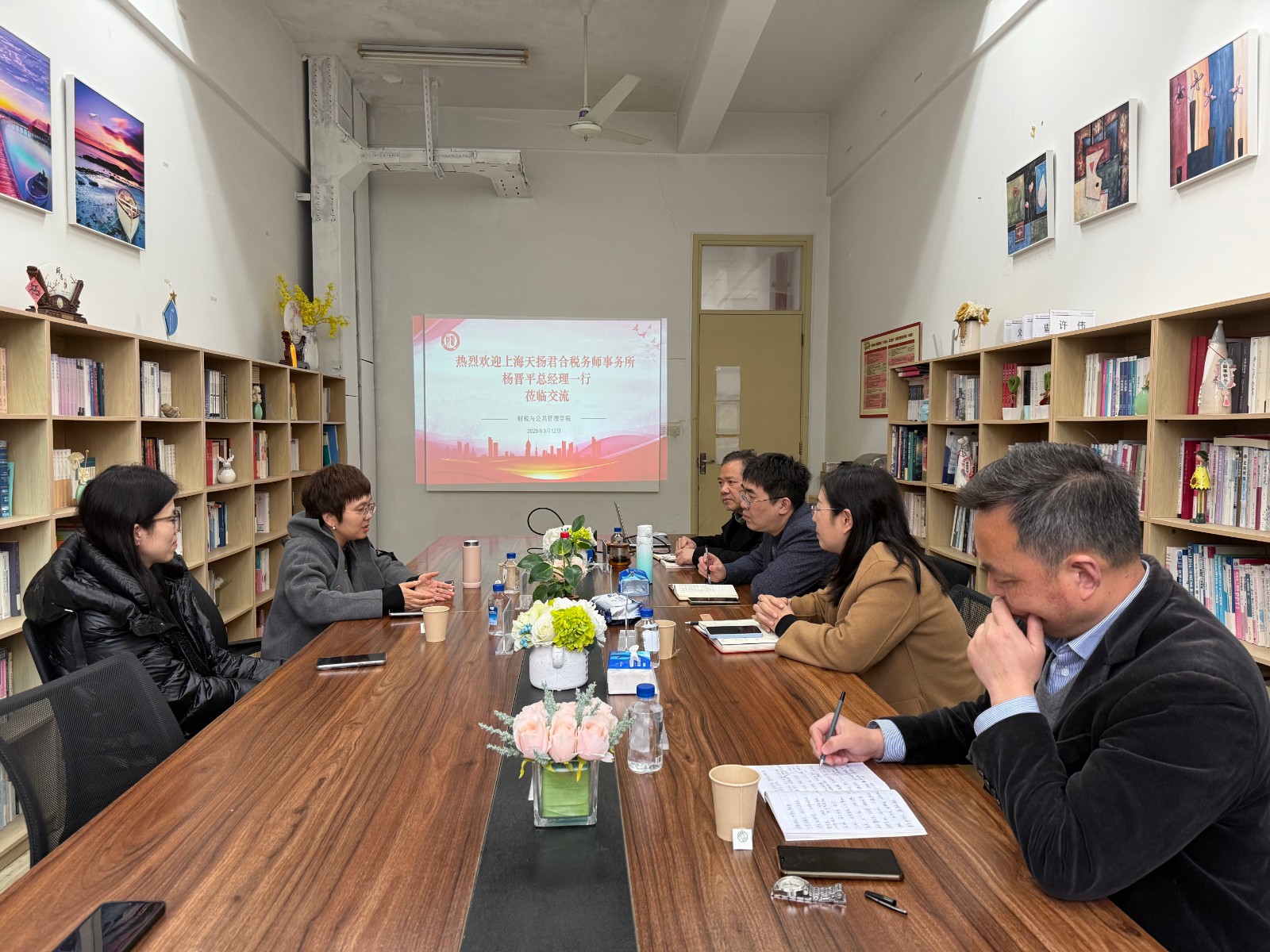 3月12日上午,上海天扬君合税务师事务所总经理杨晋平、市场总监李茜一行来访财税与公共管理学院,院长张毅强、党委书记王亭、副院长彭锻炼、税务系主任赵海益接待了杨晋平总经理一行,双方就人才培养、产学研合作等方面进行了深入交流与探讨。