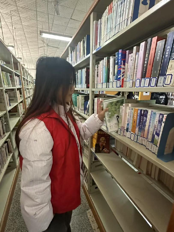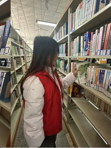 项目内容:赵靓同学寒假在图书馆做志愿者,整理书架,在熟悉了图书分类体系基础上,能够快速定位各类书籍,学会高效规划整理顺序与空间布局;帮助读者检索资料,锻炼沟通能力,学会换位思考理解需求,耐心解决问题。沉浸在浓厚的学习氛围里,赵靓同学也进一步提升自我修养,拓宽知识视野。