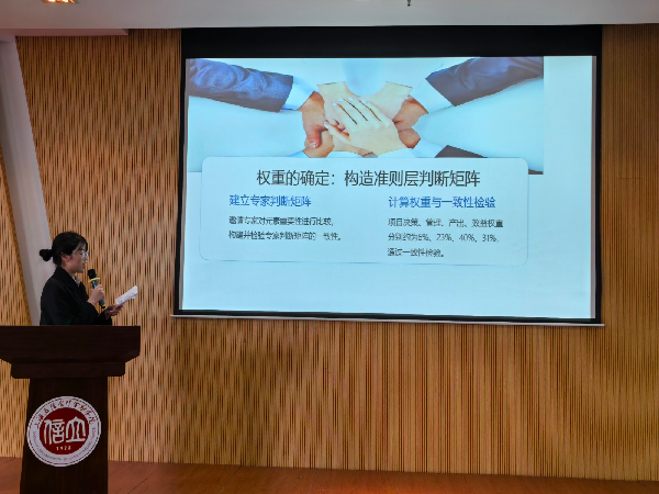 经过初赛的激烈角逐,共有八支队伍入围决赛,各个小组依次进行展示汇报,以不同的角度和思路为案例提供解决办法,展示完毕后由评委老师进行提问,各小组成员答辩。各参赛小组围绕所提供的案例材料进行总结概括项目的绩效目标、结合绩效评价原理设计一套用于评价该项目绩效的指标体系、用于调查本项目受益者的满意度调查问卷几个方面展开案例介绍。经过激烈的决赛比拼,来自财税与公共管理学院的王月现小组凭借扎实的专业基础和丰富的实操经验获得了本次比赛的一等奖。