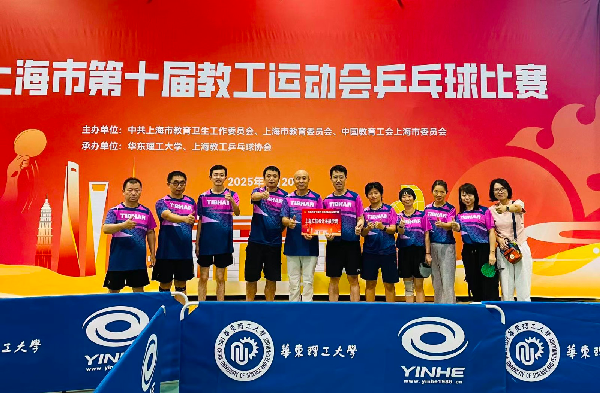 9月20日,由中共上海市教育卫生工作委员会、上海市教育委员会、中国教育工会上海市委员会主办的上海市第十届教工运动会乒乓球比赛在华东理工大学奉贤校区举行,来自全市各高校及教育机构的60家单位500余人参赛,我校乒乓球代表队斩获第7名,创历史最佳战绩。