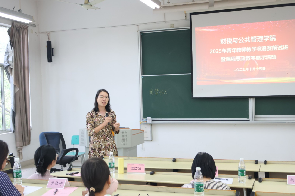 10月15日,财税与公共管理学院举办“2025年青年教师教学竞赛赛前试讲暨课程思政教学展示活动”。此次活动是学院继9月28日青年教师教学竞赛赛前推进会后,为即将到来的校第五届青年教师教学竞赛暨第七届上海高校青年教师教学竞赛选拔赛进行的模拟演练。活动邀请到第六届上海高校青年教师教学竞赛人文科学组一等奖、“上海市教学能手”称号获得者王乙珈,财税与公共管理学院退休教师赵迎春以及杨光焰、李婉、李佳坤、张乐川担任评委,党委书记王亭、教学副院长(挂职)朱颖以及学院教师共同参与。活动由朱颖主持。