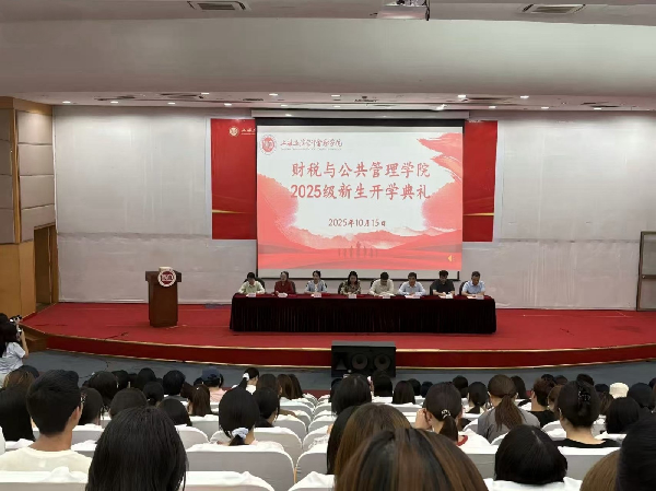 10月15日,财税与公共管理学院2025级新生开学典礼在文翔路校区学验楼二楼报告厅举行。学院党政领导、优秀校友、学院系主任、教师代表、新生辅导员、新生导生出席。新生辅导员王洁主持开学典礼。