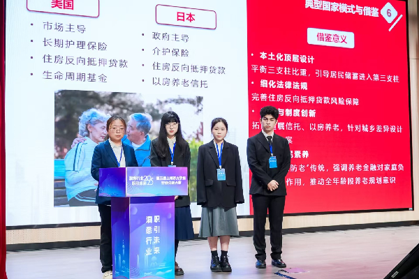 参赛团队负责人缪佳慧表示,“本次大赛有效提升了我们在市场调研、数据分析、报告撰写及演讲表达等方面的综合能力。通过对多家金融机构及相关从业人员的深度访谈与系统研究,结合行业人才供需现状及发展瓶颈,我们进一步认识到养老服务金融行业在社会发展中的重要作用,同时也意识到复合型人才短缺对行业发展的制约,初步明确了养老服务金融从业机构及其下游养老服务机构对人才的核心要求,并对未来从事该行业所需做的准备有了较为清晰的认识,受益匪浅。”