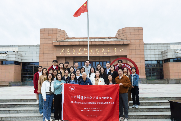 研学队伍首先来到沙家浜革命历史纪念馆,参加“新江抗”成立八十六周年纪念活动。沙家浜革命历史纪念馆馆长邱蘋、财税与公共管理学院党委书记王亭分别致辞,回顾“新江抗” 英勇奋斗的光辉历程,追溯立信与沙家浜深厚的红色渊源。邱蘋深情回望革命先辈的峥嵘岁月,号召青年一代铭记革命历史、传承红色基因,自觉继承和发扬伟大抗战精神,从红色历史中汲取奋进力量。王亭表示,此次研修是贯彻落实学校教师国情研修工作部署的重要实践,希望全体学员深学细悟,学有所获,将红色基因融入教育教学,为落实立德树人根本任务注入强大精神动力。