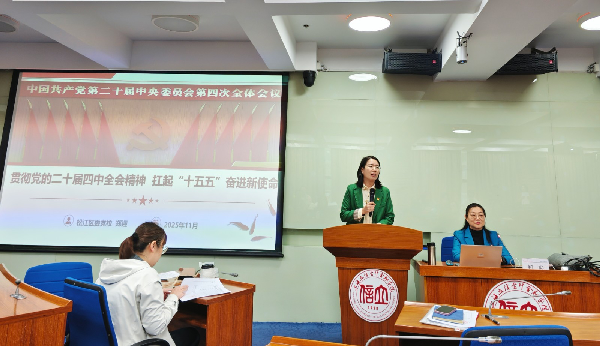 为深入学习贯彻党的二十届四中全会精神,引导广大教师更好理解党的二十届四中全会精神要义,11月12日,财税与公共管理学院举行党的二十届四中全会精神专题讲座,邀请松江区委党校副教授郑迎作学习辅导。讲座由学院党委书记王亭主持,全体教职工参加。