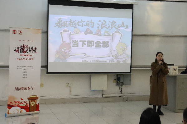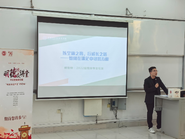 现任比亚迪股份有限公司王朝网上海区域经理的师盼帅以“如何在迷茫中寻找方向”为切入点,分享了自己从税务专业到汽车行业区域经理的转型经历,也从考研角度为同学们分析考研的利与弊,鼓励同学们要保持空杯心态,在探索中不断成长。