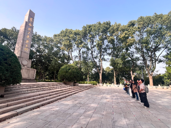 师生一行首先来到常熟烈士陵园。庄严的革命烈士纪念碑前,全体人员列队肃立,向长眠于此的革命先烈致敬。