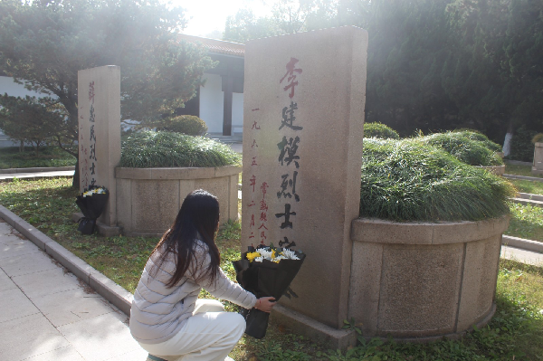 李建模烈士墓碑前,大家向烈士献上鲜花,表达深切哀思与崇高敬意。