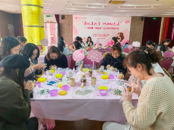 在艺术手作环节,全体师生共同参与马赛克花瓶创作体验,在指尖艺术中舒缓身心、陶冶情操,在协作共创中增进情谊、凝聚力量,以温馨雅致的方式传递关怀、温暖人心。每一道粘贴、每一抹胶痕,拼贴出属于立信女性的独特美学,一个个马赛克花瓶在师生手中渐次成型,色彩斑斓如青春跃动的思绪,承载着大家对自我价值的笃定与对未来的温柔期许。