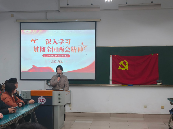 朱嘉琪同学紧扣2026年全国两会精神,从两会的时代背景、核心内容出发,细致讲解了学习两会精神的具体路径,让同学们深刻认识到全国两会承前启后、继往开来的重要意义,更明晰了作为学生党员,要做到学思用贯通、知信行统一,立足校园,以实干担当诠释青年党员的时代使命。朱梓嫣同学聚焦《政府工作报告》,围绕高质量发展核心部署、民生福祉保障举措等内容展开解读,将报告中的宏观蓝图转化为青年党员可理解、可践行的具体方向,使学生党员对照报告要求找准自身学习和服务的切入点,把两会精神真正转化为日常学习、服务同学的实际行动。