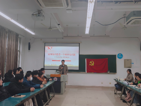 党支部书记韦柏围绕树立和践行正确政绩观作动员部署,为支部全体学生党员深化政绩观认识、践行正确政绩观厘清思路、明确要求。他强调,学生党员的政绩观应体现为学业精进、服务奉献与责任担当,要坚持以同学为中心,在学风建设、志愿服务、困难帮扶等具体实践中锤炼党性、检验初心,把“功成不必在我”的境界与“功成必定有我”的担当有机统一,以扎实作风和实际成效赢得师生信任。
