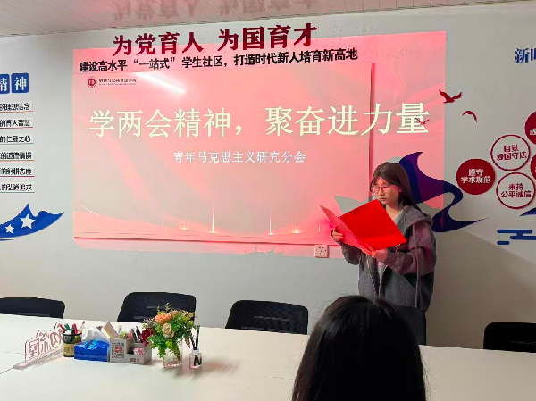 研讨会伊始,几位同学共同学习了政府工作报告中的重点内容,围绕“高质量发展”“民生温度”“青年发展”等关键词展开深入讨论。王浩如同学在交流中谈到:“两会精神并不遥远,它体现在乡村振兴的田间地头,体现在科技创新的实验室中,也融入我们为理想奋斗的每一个日常。”通过理论学习与感悟分享,同学们进一步认识到,国家的发展蓝图与个人的成长轨迹息息相关,新时代青年应当以实际行动回应时代召唤,将个人理想融入国家发展大局。