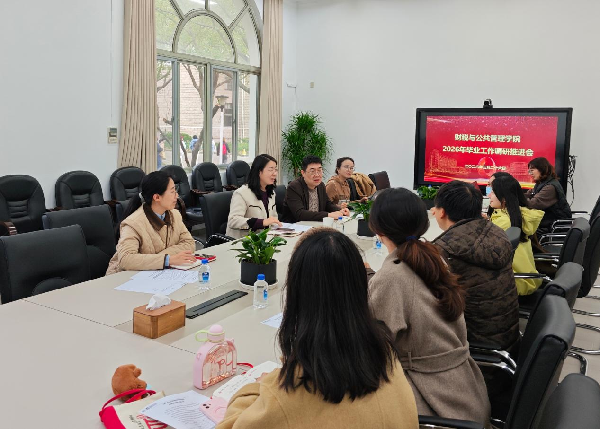 为了解当前毕业工作进展、确保2026届毕业生顺利毕业,财税与公共管理学院先后于3月17日、3月26日举行2026届毕业工作调研推进会,学院党委书记王亭、院长张毅强,党委副书记、副院长(挂职)张嘉薇,副院长(挂职)朱颖,毕业年级、新进辅导员以及教学秘书参会。