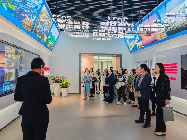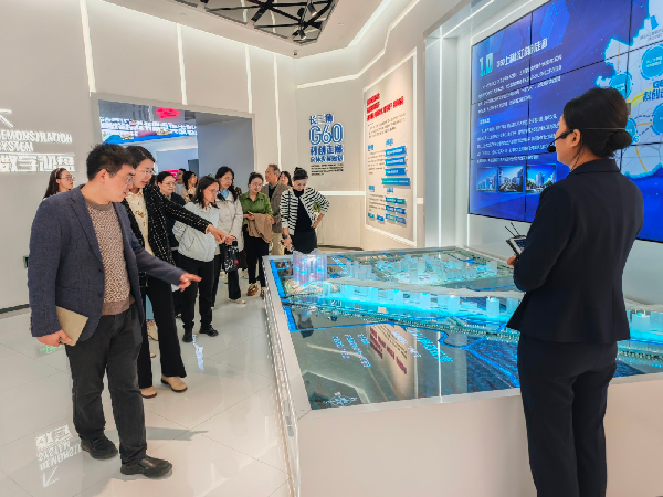 G60科创云廊作为长三角G60科创走廊标志性工程,是区域科技创新与产业升级的重要窗口。师生们来到长三角G60科创走廊规划展示馆,跟随着讲解全面了解其从“一廊九区”到“九城如一城”的发展历程与建设成果,沉浸式体验、直观感受长三角科创动能,深刻领会新质生产力核心要义,对战略性新兴产业布局与企业创新成果有了具象认知。学院师生结合所学专业和工作实际,围绕新能源汽车、新材料、人工智能、产业集群党建等话题边参观边交流探讨,实现理论与实践深度融合。