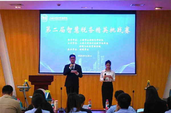 4月22日下午,由上海立信会计金融学院团委、财税与公共管理学院主办,财税学社承办的第二届智慧税务精英挑战赛决赛在文翔路校区行政楼二楼多功能厅举办。