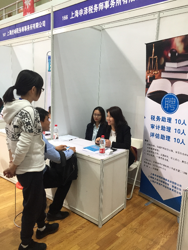各税务师事务所通过上海市注册税务师协会和学校共同搭建的平台,报名参加2019届毕业生秋季校园招聘会,面向全校人才进行宣传、招聘,既满足用人单位的多样化招聘需求,也给学生提供更多的职位选择。尤尼泰(上海)税务师事务所、上海立信诚瑞税务师事务所等17家单位参加了松江校区招聘会,上海立丰税务师事务所、上海元耀税务师事务所等8家单位参加了浦东校区招聘会,共带来100多个招聘岗位。与2017年的招聘会相比,税务师事务所的人才需求量显著增加,岗位需求也更加丰富,招聘岗位从税务助理拓宽至审计助理、代理记账、绩效评价等岗位。