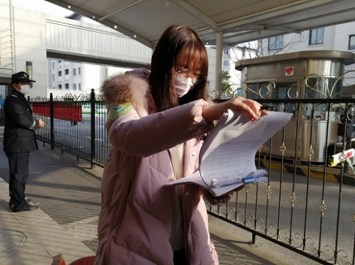 来自18级财政三班朱逸琦同学参与了当地团区委组织的志愿活动。她的主要工作是协助门卫检查、办理出入证。在“3·8”妇女节的当天,当地居委会干部买来玫瑰花,为与她一同在岗的所有女性防疫志愿者们庆祝这一特殊的节日。她高说,在志愿者的大家庭中,每一位志愿者心中都有一个坚定的信念——在共同努力下,终将渡过难关。