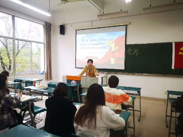 11月27日上午,财税与公共管理学院学生第一党支部举行党课教育活动,联系院领导副院长彭锻炼、支部书记分别为支部作了学习党的十九届五中全会公报要点和学习习近平总书记在第三届中国国际进口博览会开幕式上的讲话两堂党课。